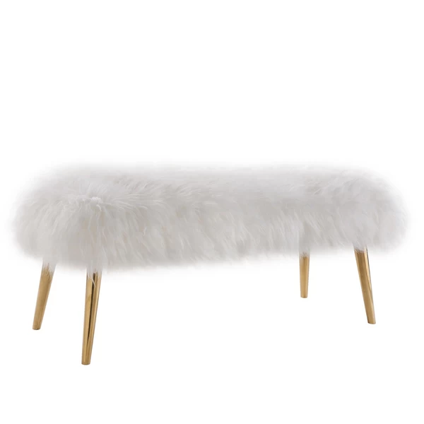 The perfect perch for any space, our luxurious Alexa Bench features a fluffy sheepskin benchtop, while polished gold legs below add contrast and shine.
