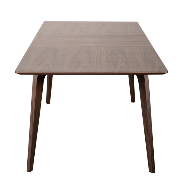 The Alyssa Extending Dining Table blends classic style with contemporary design. This table, which extends from 63 inches to 83 inches with one middle extension leaf, has walnut veneered top, solid wood frame and legs. The walnut stained ash veneer finish compliments a multitude of design styles, from traditional to modern.