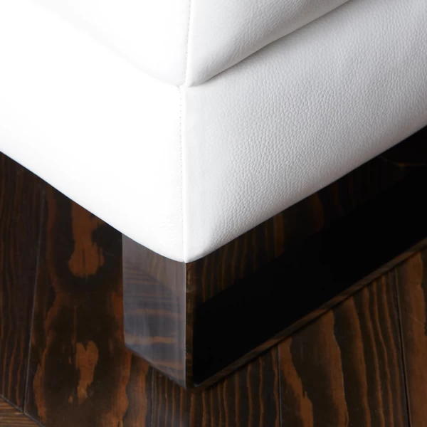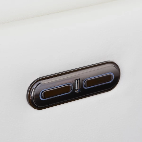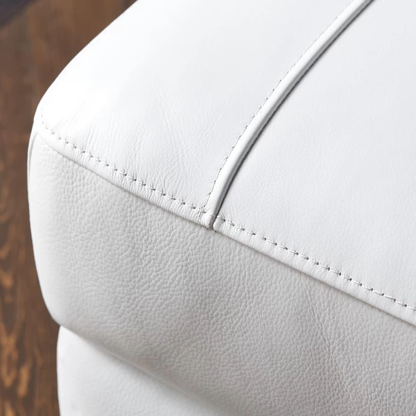 With its top-grain, semi-aniline leather upholstery, polished stainless-steel legs, and streamlined silhouette, this two-piece sectional brings modern elegance to the sitting room, while its powered reclining end seat, adjustable headrests, and ample padding ensure itâs as comfortable as it is stylish. A convenient USB port located in the control panel lets you charge up your devices while you lounge.