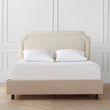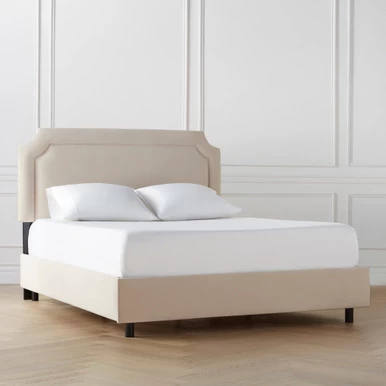 Crafted with a sturdy kiln-dried hardwood frame, this clean-lined bed boasts notched corners and neatly tailored upholstery. Mattress and box spring required. Made in the USA. Shown in Velvet Pearl.
