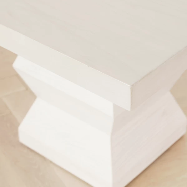 Sleek and stylish, our Dakota table’s cerused white finish lends timeless elegance to the dining room, while its sculptural pedestal legs add character and contrast.