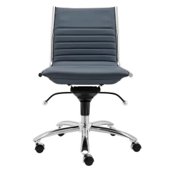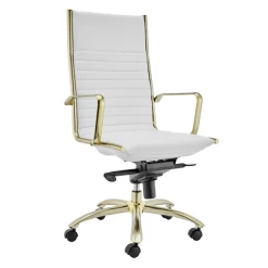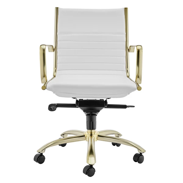 Designed with a brushed gold tone frame and channeled faux-leather upholstery, this desk chair brings both style and function to the home office. Constructed in one piece, its seat and back interior is wrapped in flat bungie banding for all-day comfort, while casters make the chair easy to move without damaging your floors.