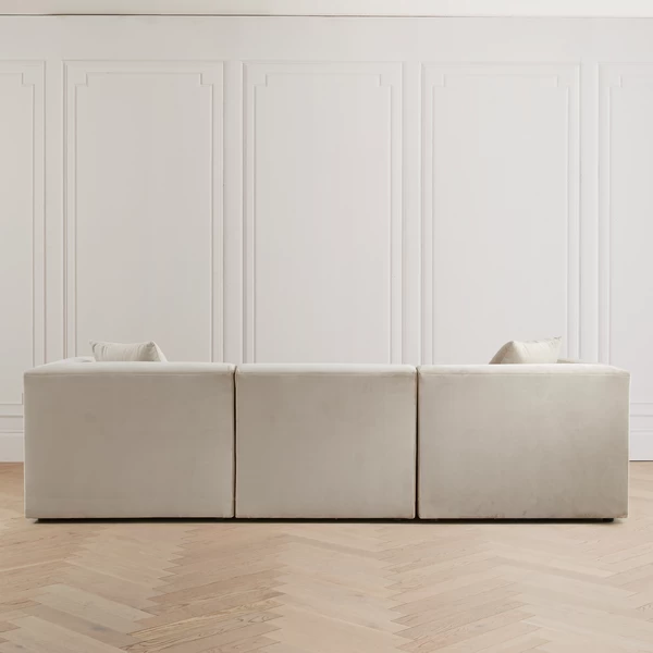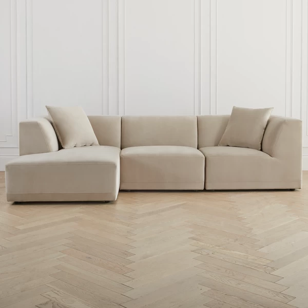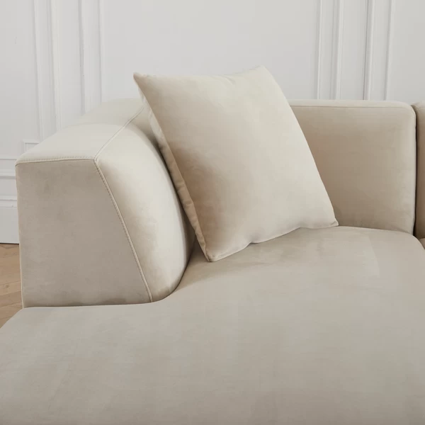 The Fiona sectional is a versatile and stylish piece of furniture that can provide both comfort and functionality to your living space. The clean lines and minimalist aesthetic give the sectional a modern and contemporary feel, making it a great addition to any modern home. Shown in Royale Plush Velvet Sand.