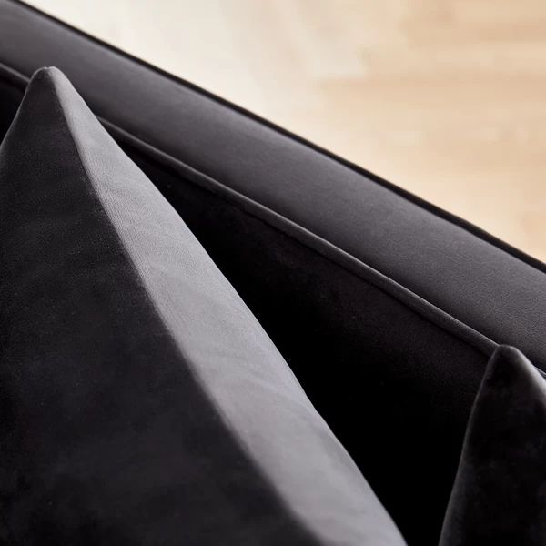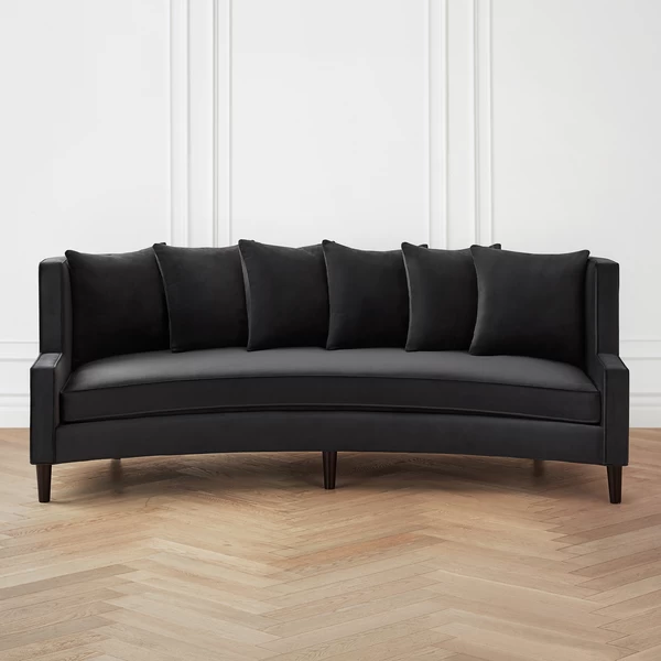 Framed in kiln-dried hardwood with tapered legs, six plush throw pillows, and an elegantly curved silhouette, our Gia Sofa envelops you in comfort and style from all angles. Shown in Royale Plush Velvet Gunmetal.
