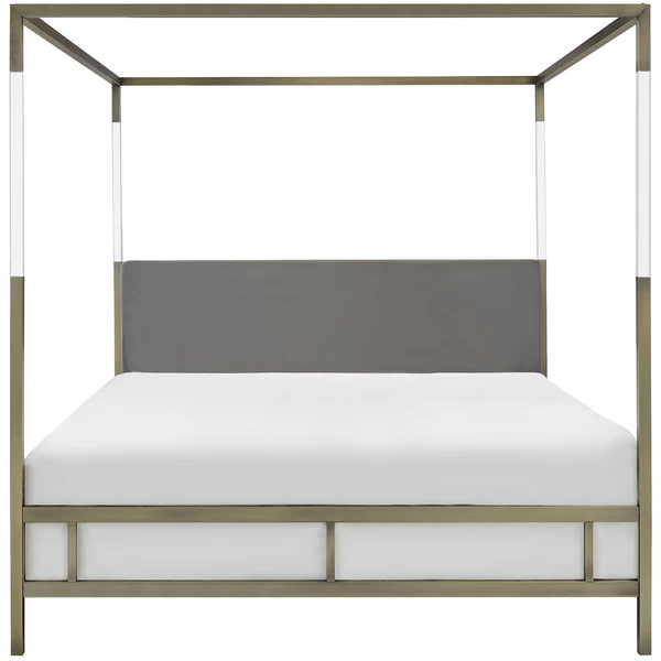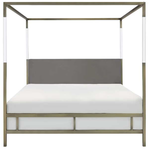 Itâs indulgent, luxurious and you deserve it: the Gwenyth Canopy Bed. An acrylic and gold iron frame accents the bedroom in celebrity-chic glamour while a grey velvet headboard offers must-touch texture and comfort.