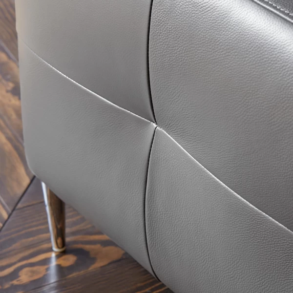 Upholstered in top-grain, semi-aniline leather and perched on polished stainless-steel legs, this two-piece sectional makes a sleek and modern statement in the sitting room, while its powered reclining end seat, adjustable headrests, and ample padding ensure a comfy seat.