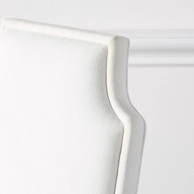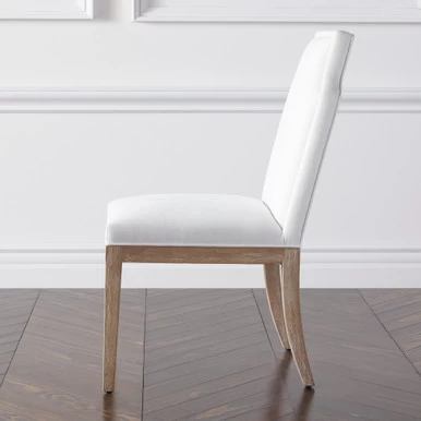The notched back adds a chic, unexpected element to our clean-lined Jasmine chair, while the amply padded seat cushion provides plenty of comfort. Shown in Maxwell Linen Oyster.