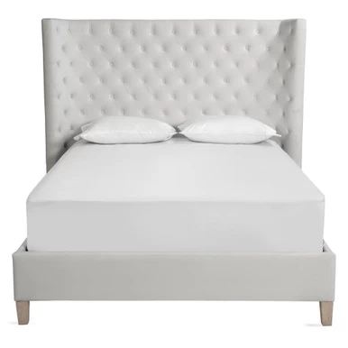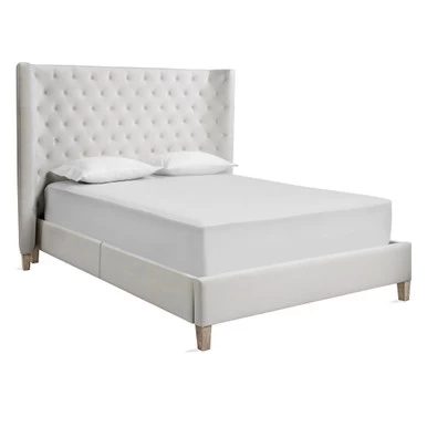 Inspired by designs found in the chicest Parisian hotels, our Jen Collection makes a glamorous, refined statement in the bedroom. Framed in kiln-dried hardwood, each features a gently curved wingback-style headboard and neatly tailored upholstery with hand-applied button tufts in a lavish diamond pattern. Shown in Bella Velvet White.