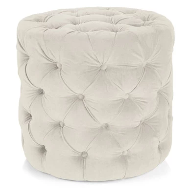 Our Jules Ottoman Stool is a glamorous seat. An all-over Chesterfield-inspired design serves as a showcase for beautiful hand-craftsmanship and luxurious detail. Hand folded tufting creates a shifting tonal variation that gives the style a lush depth and beauty. Rich, covered buttons nestle inside, punctuating each tuft. Place in a walk-in closet or in the living room for spontaneous seating. Shown in Velvet Pearl.