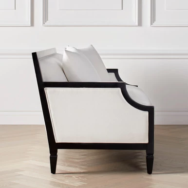 A timeless silhouette, notched arms, and exposed matte black frame make our Kayla sofa a standout piece, while its kiln-dried hardwood frame and plush upholstery offer long-lasting comfort and support. Shown in Kenley Chenille Snow.