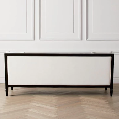 A timeless silhouette, notched arms, and exposed matte black frame make our Kayla sofa a standout piece, while its kiln-dried hardwood frame and plush upholstery offer long-lasting comfort and support. Shown in Kenley Chenille Snow.