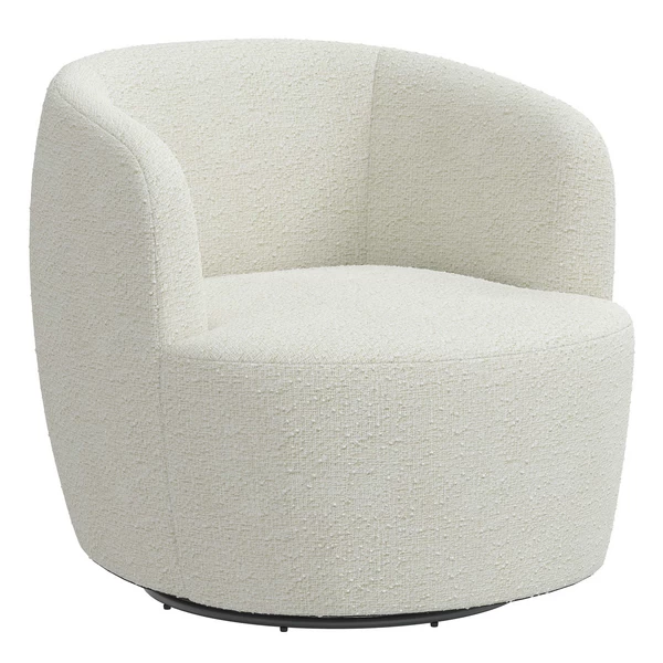 The sleek curves of our new Mid-Century Modern swivel chair allow for lounging in unmatched comfort. This piece offers a tub-like rounded back and a hidden swivel base that provides 360-degree movement that speaks to smart functional design. Completely upholstered, this will become your favorite chair for cozy lounging. Shown in Milano Snow.