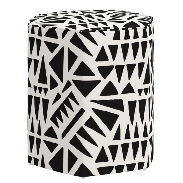 - Hexagon shaped stool, fully wrapped in a black and white Globally inspired print.
