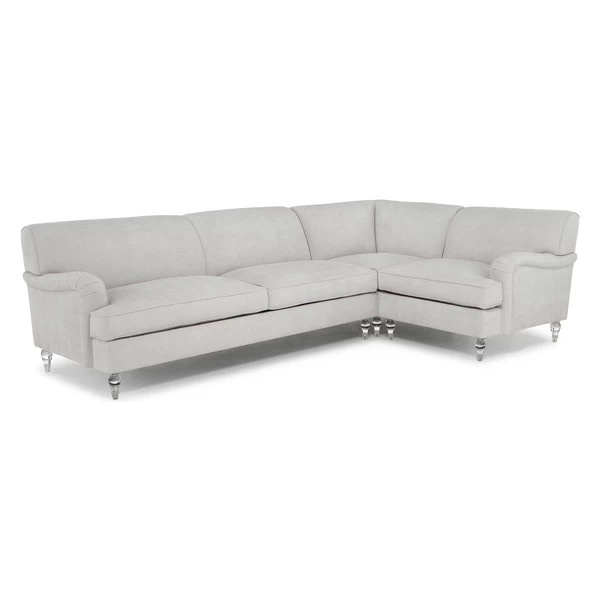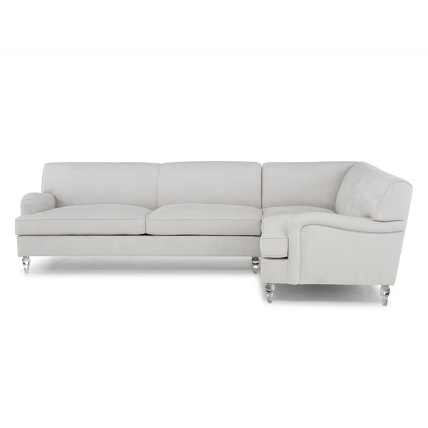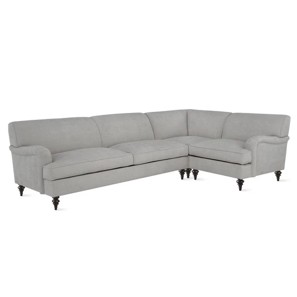 Designed with English arms, graceful turned legs, and neatly tailored upholstery, the designs in our Peyton Collection will never go out of style. Reinforced kiln-dried hardwood frames set a sturdy foundation while high-density foam padding ensures long-lasting comfort. Shown in Maxwell Linen Pearl Grey with turned espresso legs.