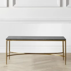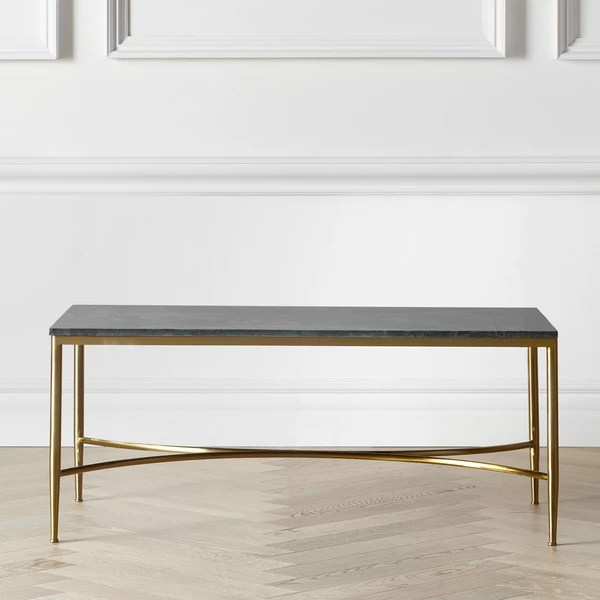 An ideal centerpiece for the modern living room, this coffee tableâs sculptural steel frame is finished in brushed gold and supports an expressive green marble top.