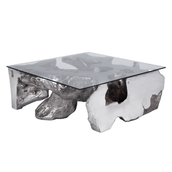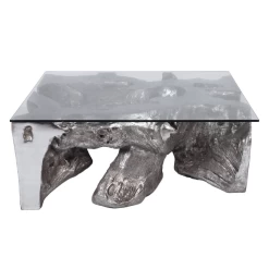 Invite natural-looking elements into your home with our luminescent Sequoia Console Table. Carefully cast from the roots of an Acacia tree, this console brings sculptural detailing to its surrounding dĂŠcor. Molded out of resin in a multi-step process, our Sequoia Console Table is finished in silver leafing, giving the table base a subtle luster.