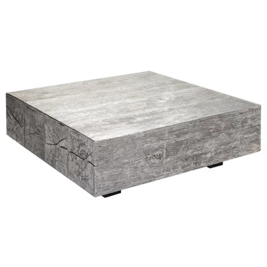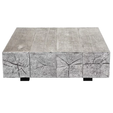 Our Timber Coffee table is constructed of resin which is cast from reclaimed old oak beams from the Baguio region of the Philippines. Originally used as railroad tracks on a route passing through Manila. Once pulled from the mold, a multi-step process is used to achieve the luster. Hand-painted silver and then authentic silver leaf is hand-applied by skilled artisans. A final step is antiquing the table with a hand-rubbed oil.