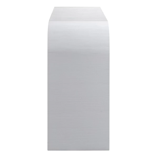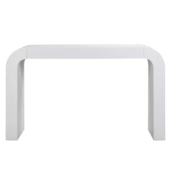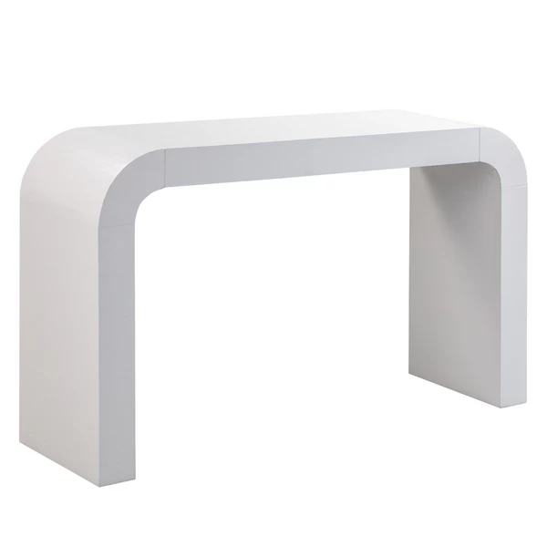 Featuring a rounded silhouette and white acacia finish, this sleek and stylish console adds modern appeal to any space.